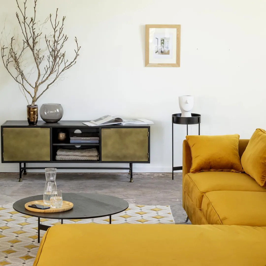 A la fois atypique et tendance, ce meuble TV sort du lot. Osez l’association entre le laiton et le métal noir, duo parfait ! Osez les nuances lumineuses et dorées du laiton. Craquez pour ce piétement bourré de charme en laiton ! Osez et craquez pour cette pépite !