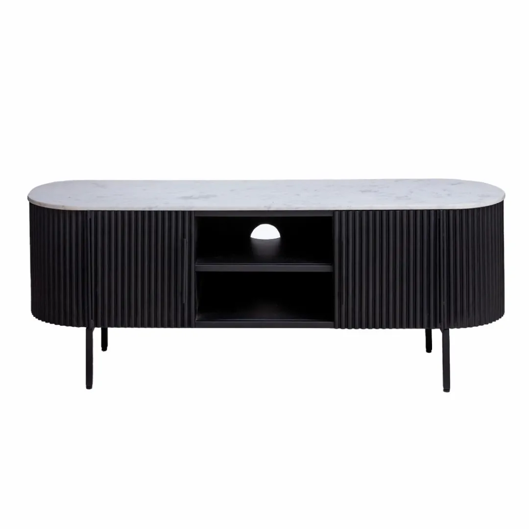 Les deux compartiments ouverts au centre vous permettent d’exposer vos objets de décoration préférés, tandis que les deux compartiments fermés de chaque côté vous offrent un espace de rangement pratique pour dissimuler les câbles et autres accessoires.