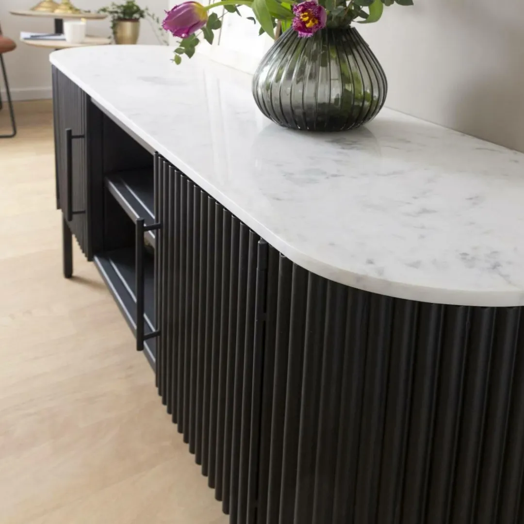 Lorsqu’il s’agit d’aménager un salon, le choix des meubles est primordial. Prenez le temps de trouver le meuble TV idéal, alliant praticité, fonctionnalité et esthétique. Notre meuble TV « Mona » répond à tous ces critères avec son design en métal noir et son plateau en marbre blanc.