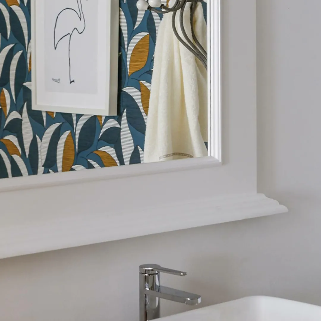 Magnifique miroir grand modèle en pin massif, patine antiquaire blanche, de 90 x 150 cm. Il trouvera sa place aussi bien dans votre salle de bain que dans votre salon, chambre. Modèle traditionnel de qualité en pin massif neuf.