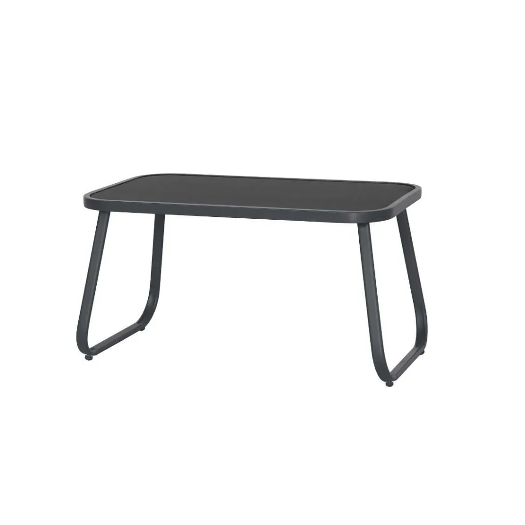 Le petit salon de jardin Zohra offre une touche moderne et élégante avec sa structure en aluminium gris et ses assises en textilène gris, alliant confort et résistance au quotidien.