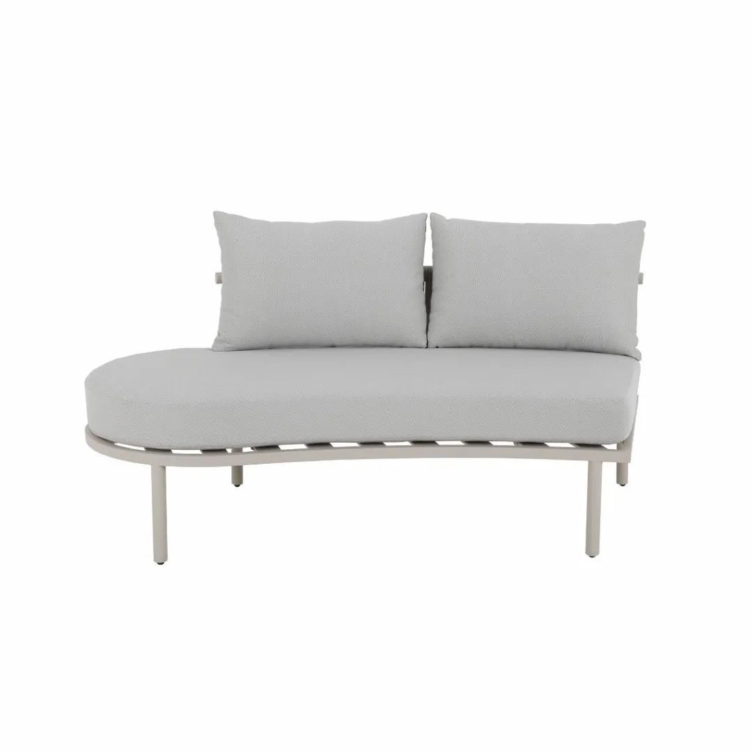 Le salon de jardin Zion allie style et confort avec sa table et son canapé en aluminium taupe, au design en forme organique, parfait pour cette année 2025. Le dossier du canapé en corde ajoute une touche subtile et design, tandis que les coussins offrent un confort optimal pour des moments de détente.