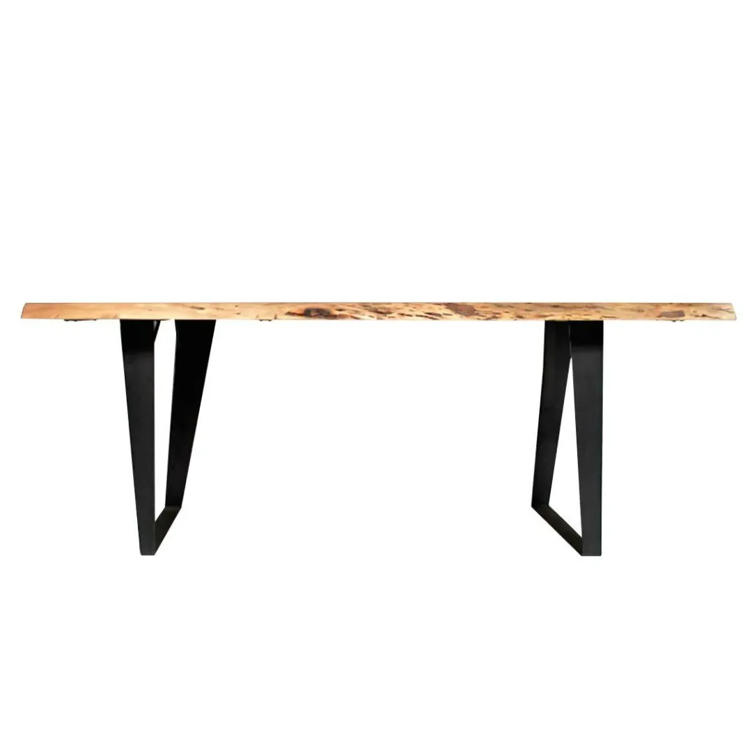 Cette table à manger bois massif aux dimensions généreuses vous permettra d’accueillir aisément 6 chaises. Ses pieds métalliques asymétriques, qui donnent à la table un style très design, laissent une place optimale pour les grandes jambes. Son magnifique plateau en acacia aux contours irréguliers lui donne un aspect naturel vraiment unique ; chaque plateau étant fait à la main. La couleur oranger du bois d’acacia apportera une touche de chaleur à votre intérieur.