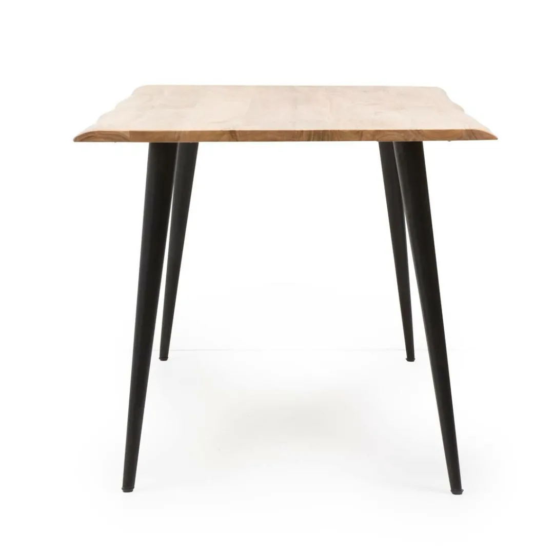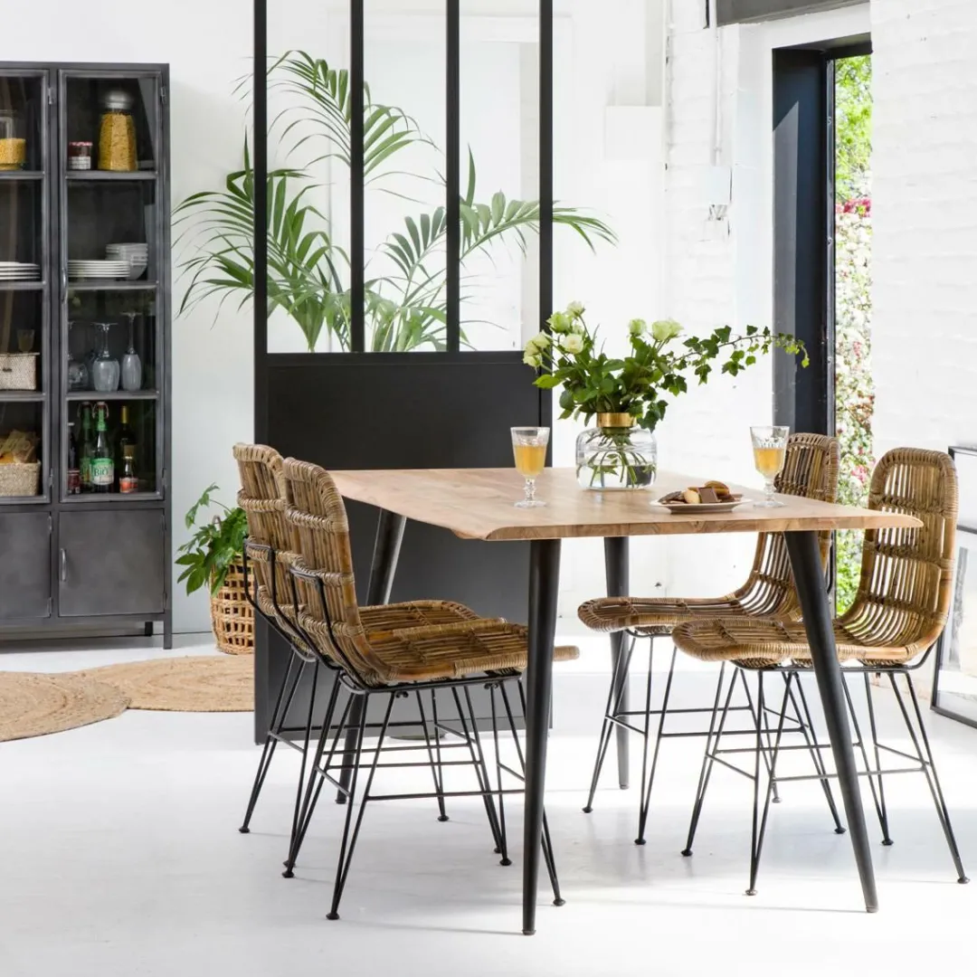 On apprécie son aspect chaleureux grâce aux nuances du bois d’acacia et à ses formes galbées, et on adore la finition très soignée de son piétement compas en métal noir. Cet aspect brut apportera une touche de modernité et une vraie dose de convivialité. Son design galbé est souligné par les irrégularités que l’on retrouve sur les extrémités du plateau. Grâce à ses traits fins et épurés, cette table à manger en bois massif saura apporter une touche de légèreté à votre décoration. Très agréable au toucher, elle fait un sans-faute !