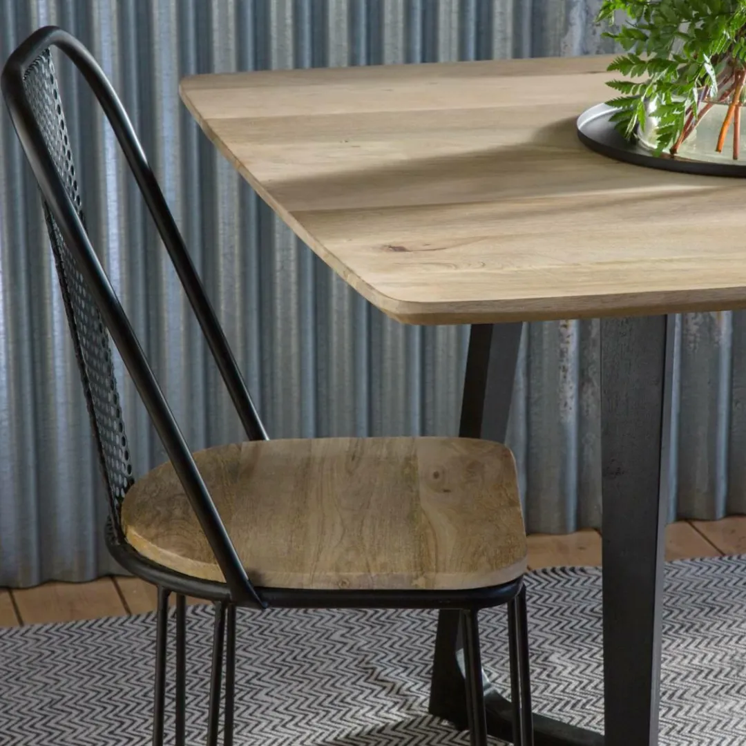 On n’hésite pas à l’accompagner de chaises en velours pour un rendu tendance, ou encore de chaise en cuir pour un effet 100% industriel ! N’hésitez pas à adopter un banc pour renforcer le côté convivial de cette table. Le bois de manguier est un bois qui s’entretient très facilement.