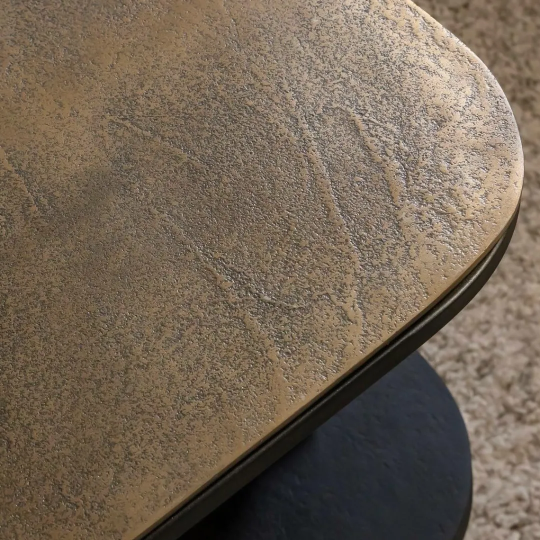 Cette table basse de la collection Victoria séduit par son design contemporain et son alliance de matériaux robustes. Son plateau en aluminium repose sur une structure en métal noir épurée qui lui confère un style à la fois élégant et minimaliste. La ligne arrondie de ses plateaux lui apporte une douceur visuelle qui contraste harmonieusement avec la rigueur de son piètement tubulaire, faisant d’elle une pièce de caractère pour le salon.