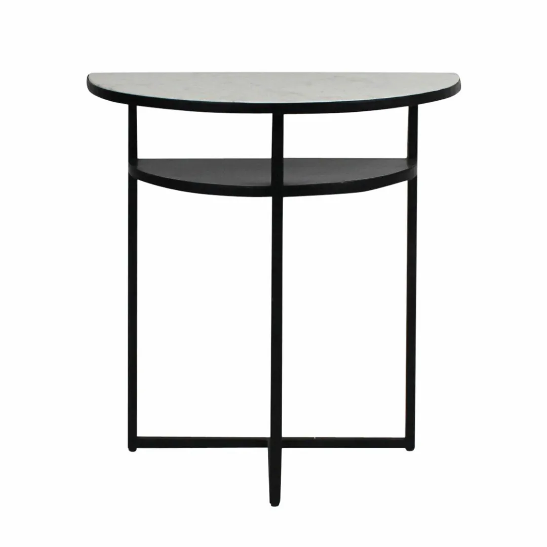 Elle est conçue à partir de deux matériaux de qualité à savoir, le métal et le marbre blanc. Sa structure en métal noir est très marquée et affiche un caractère industriel que l’on aime beaucoup. Elle vous proposera deux plateaux, le plateau principal, en marbre blanc, quant au second, il est en métal et de plus petite taille.