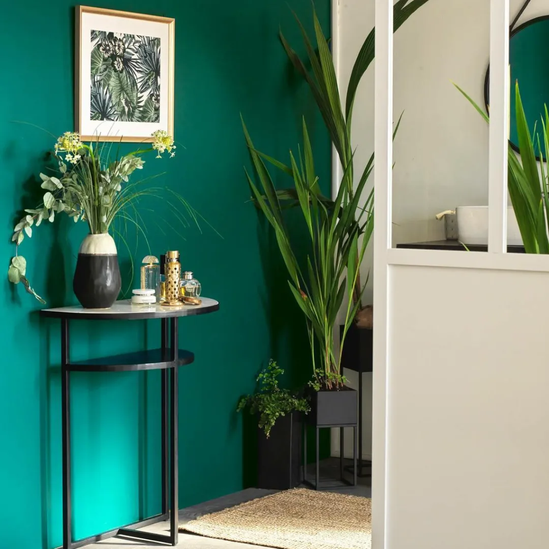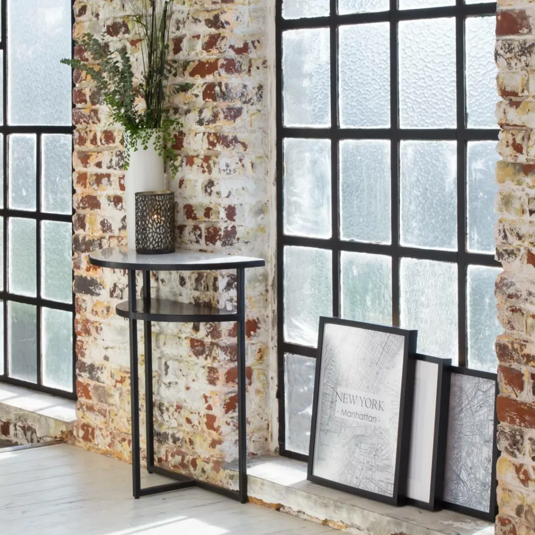 Laissez-vous tenter par cette console industrielle et fonctionnelle. Son style met tout le monde d’accord et son double plateau vous proposera davantage de rangement. On aime son design demi-lune qui épousera le mur que cette console habillera.