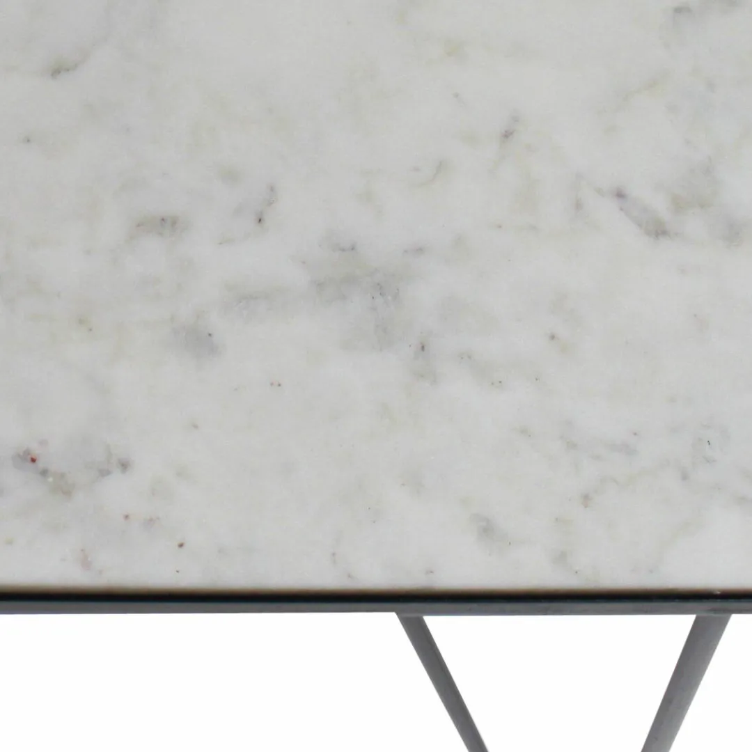 Elle est conçue à partir de deux matériaux de qualité à savoir, le métal et le marbre blanc. Sa structure en métal noir est très marquée et affiche un caractère industriel que l’on aime beaucoup. Elle vous proposera deux plateaux, le plateau principal, en marbre blanc, quant au second, il est en métal et de plus petite taille.