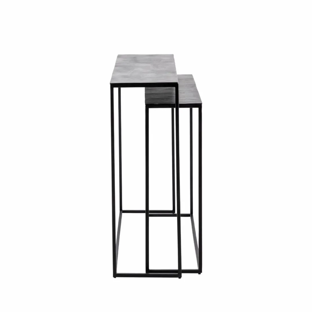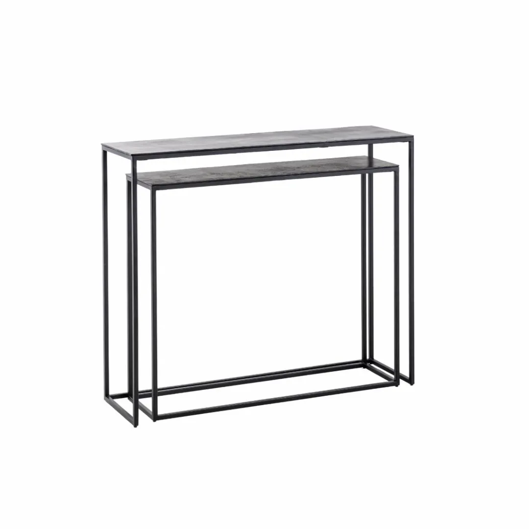 Ce set de deux consoles de la collection Linda mise sur la légèreté visuelle et l’élégance des lignes épurées. Conçues en aluminium avec structure en métal noir, elles s’intègrent parfaitement dans un intérieur contemporain ou industriel. Leur design minimaliste et leur format gigogne permettent de les disposer ensemble pour un effet graphique ou séparément pour habiller différents espaces.