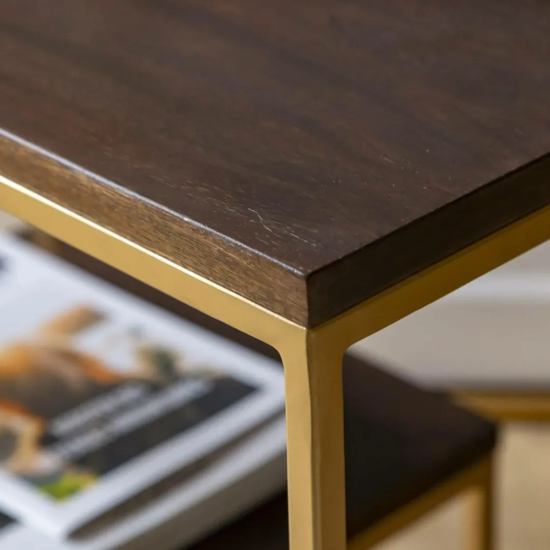 Cet ensemble contient deux tables : une plus grande de 60x35x52 et une plus petite de 50x30x47. Les magnifiques plateaux en bois de manguier sont dotés d’une structure en métal doré exquise, qui ne manquera pas de faire sensation dans n’importe quelle pièce. Transformez n’importe quel espace avec cette combinaison métal-bois moderne et chic de la collection Léon.