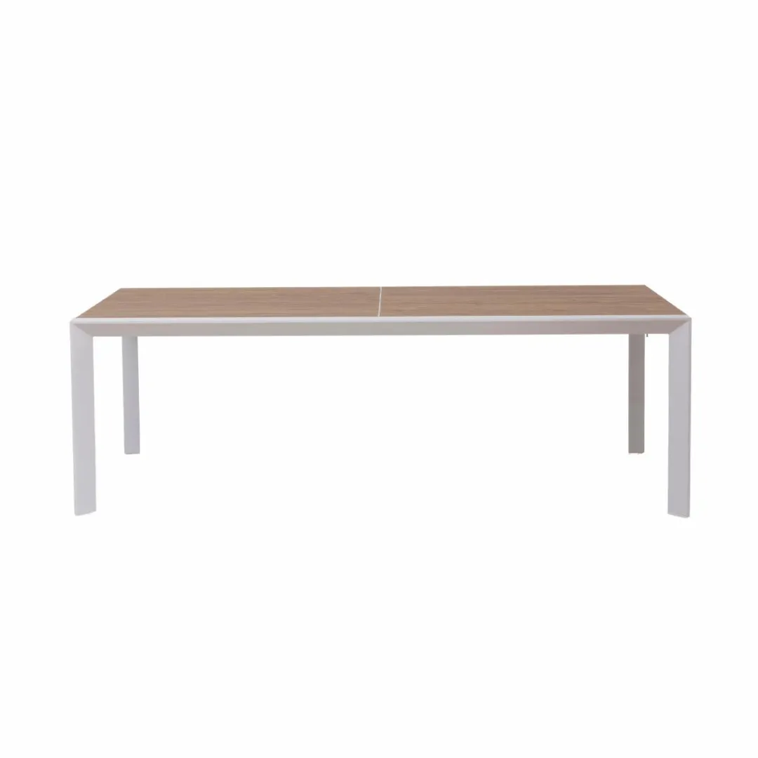 Vous aimez organiser de grandes tablées en extérieur ? La table de jardin extensible Ayden est faite pour vous ! Avec son look raffiné associant une structure en aluminium blanc et un plateau imitation bois, elle allie élégance et praticité pour embellir votre terrasse.