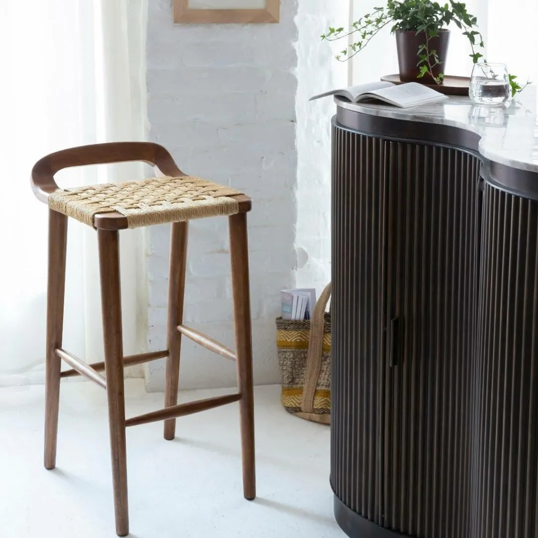 Ce tabouret de bar de style bohème est fabriqué à partir d’un magnifique bois de manguier et comporte un siège tressé serré en corde pour plus de texture. Ce tabouret ajoute une touche d’exotisme à votre cuisine, bar ou à votre salle à manger. Avec sa hauteur de 83 cm, sa largeur de 34 cm et sa construction robuste, il permet de se mettre à l’aise dans n’importe quel espace.
