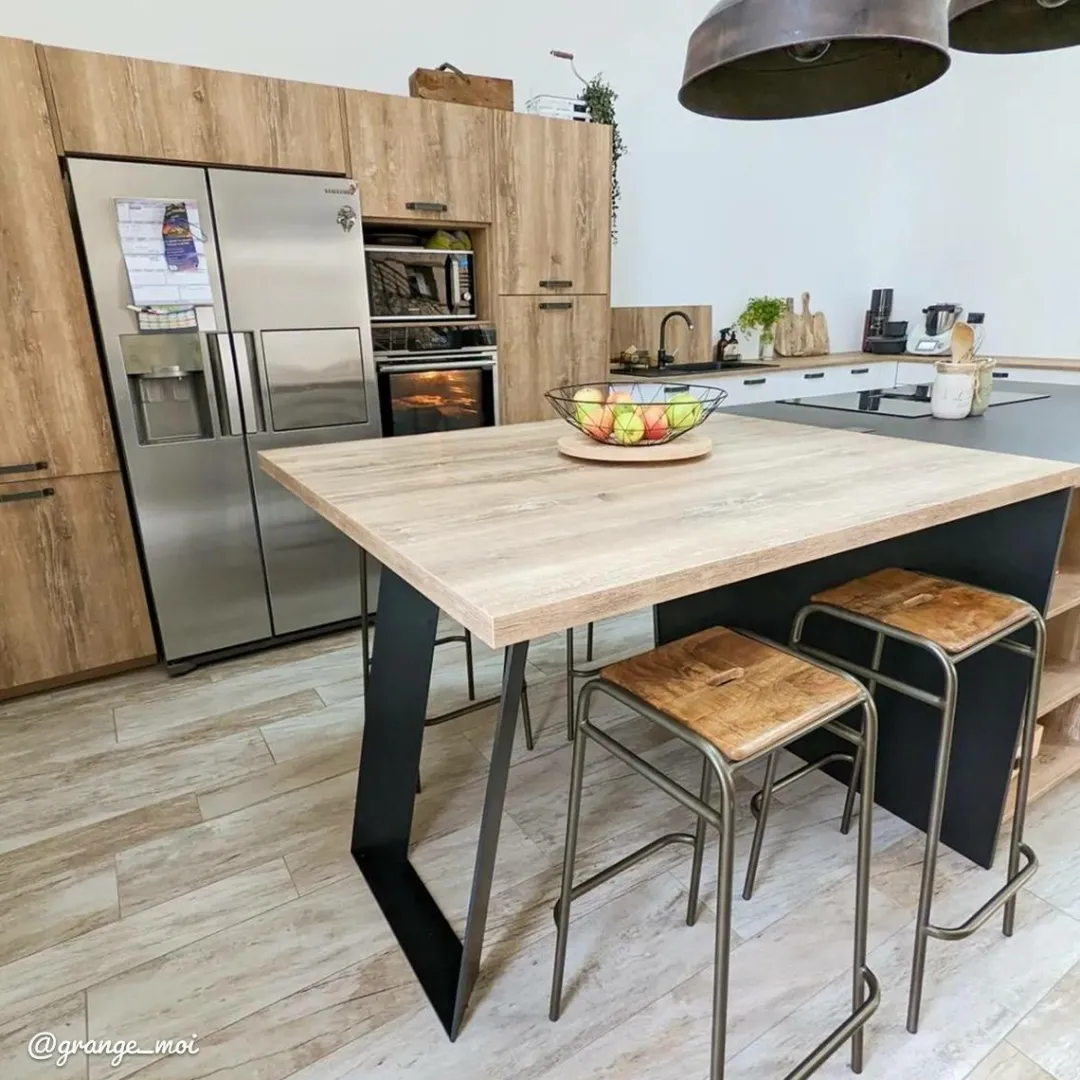 Ce tabouret est doté d’une assise en manguier et d’un piétement en métal gris pouvant tirer vers le bronze. On aime beaucoup les nuances lumineuses de son bois qui contrastent très bien avec le métal. Sa conception simple et épurée est modernisée le design du piétement. Vous profiterez d’un repose pieds de chaque côté qui vous permettra de vous mettre à l’aise.