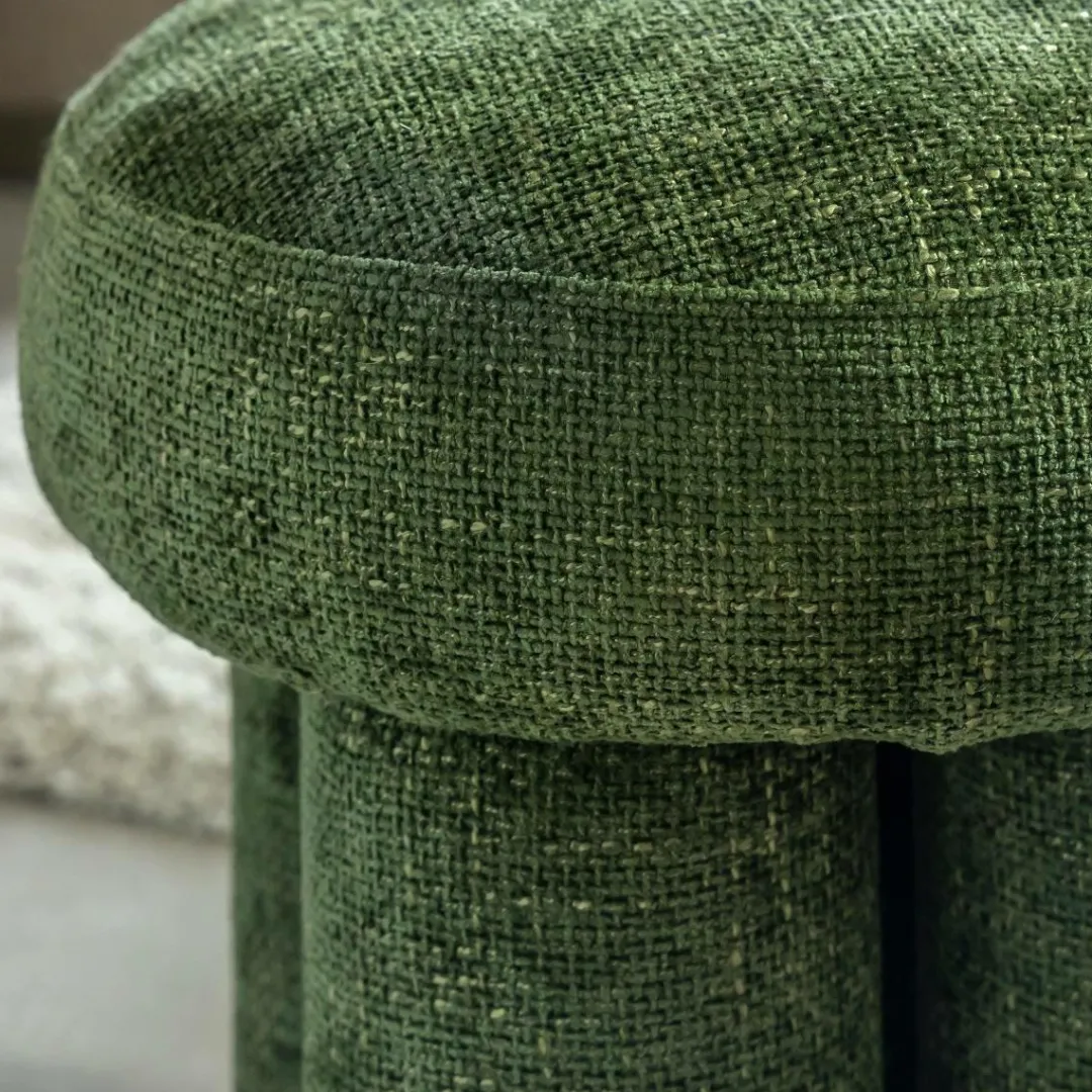 Ce petit tabouret en tissu vert séduit par son design audacieux et sa silhouette arrondie. Son revêtement doux et texturé lui confère un aspect chaleureux et réconfortant, tandis que sa teinte verte apporte une touche tendance à votre intérieur. À la fois original et élégant, il s’adapte aussi bien à un salon moderne qu’à une chambre ou un espace détente.