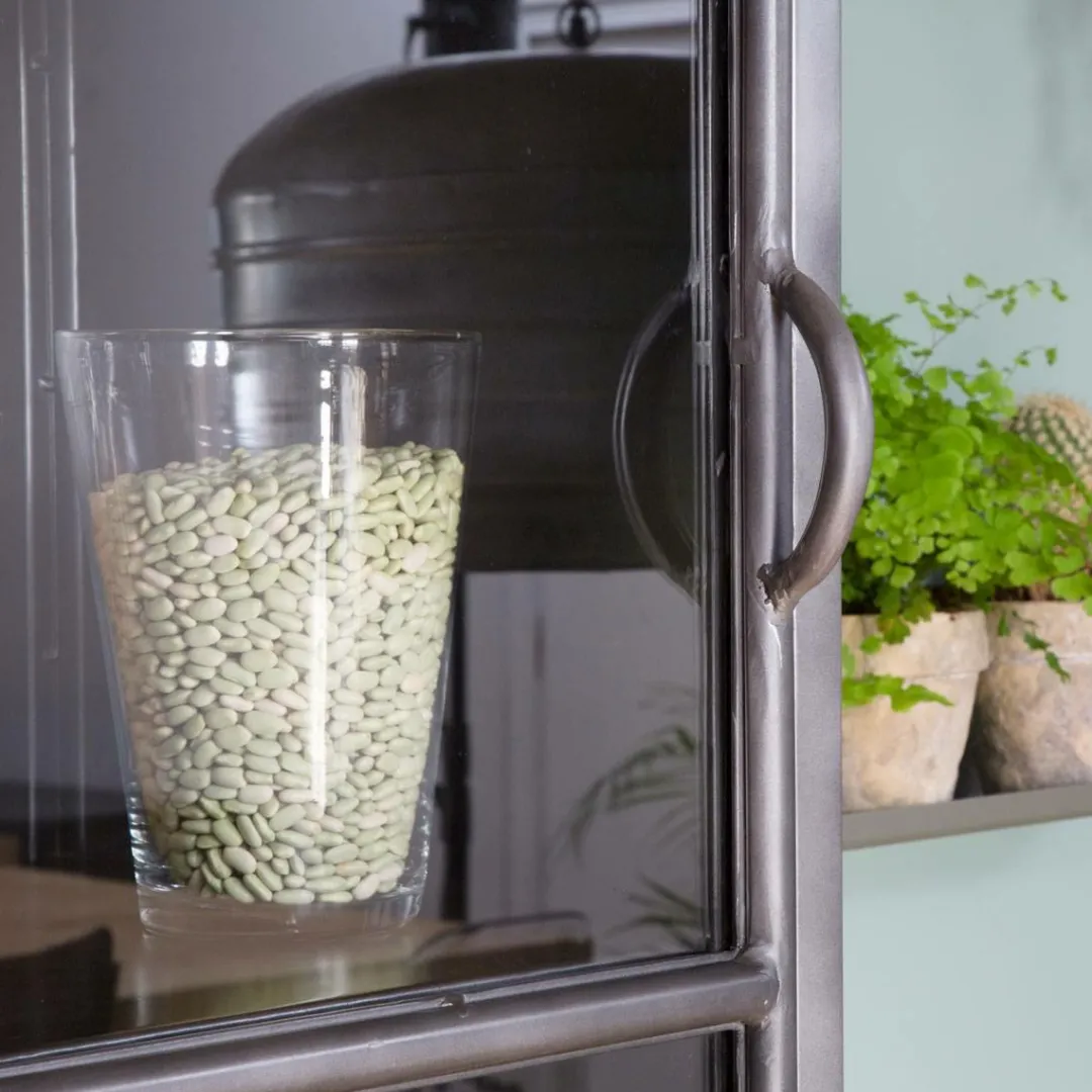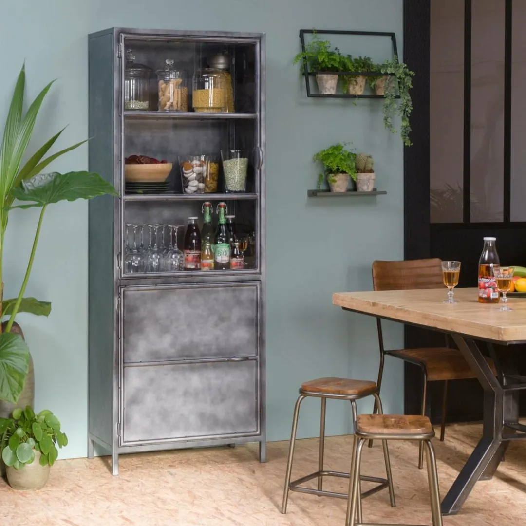 Conçue entièrement en métal gris, cette vitrine est aussi décorative que pratique. Son effet patiné l’inscrit parfaitement dans la tendance vintage et lui permet de s’associer facilement à une palette de couleurs actuelles. Ses 4 étagères vous permettront de stocker en quantité.