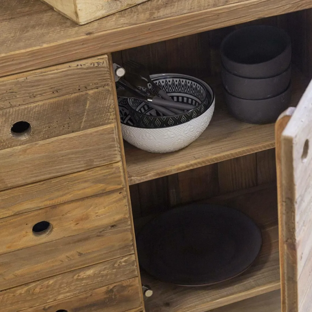Vous hésitez entre opter pour un buffet ou pour un vaisselier ? Ici, plus d’hésitation ! Ce buffet industriel vous propose un meuble au design à la fois novateur et vintage. Le brut, le naturel, le cachet, tout est réuni pour vous faire craquer ! Il reflète l’authenticité à l’état pur grâce à ses imperfections et irrégularités.