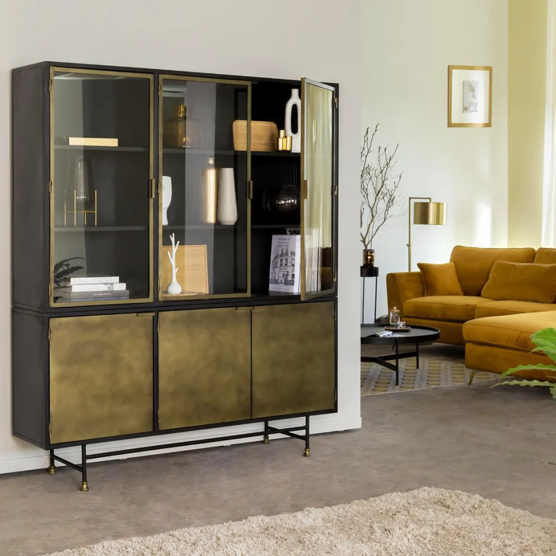 A vous qui rêviez d’un vaisselier au style industriel, nous avons ce qu’il vous faut. A la fois atypique et tendance, ce meuble trouvera sa place dans votre intérieur au style brut et tranché. Il propose un design très actuel en alliant le laiton qu’on ne présente plus et le métal noir qu’on adore encore et encore!