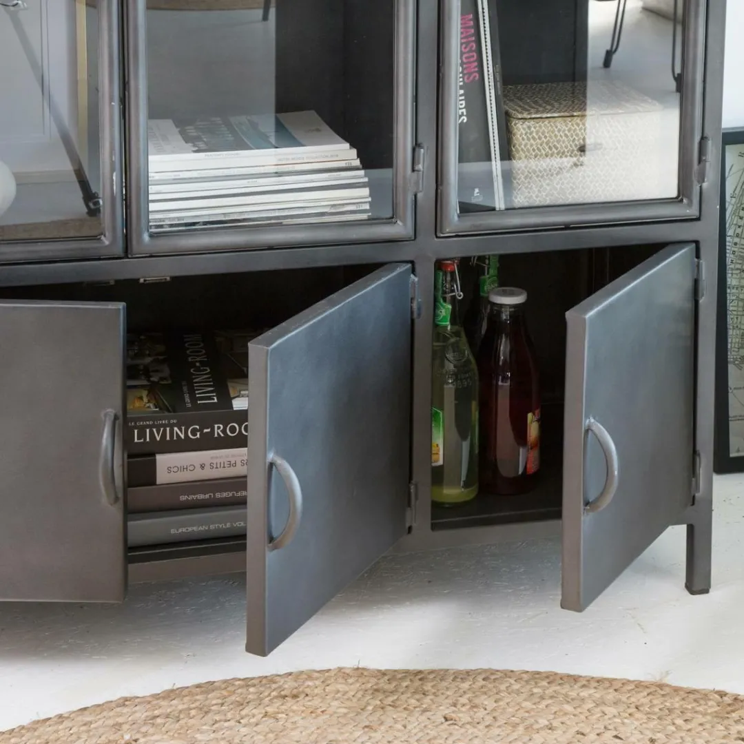 Sa partie supérieure est dotée de trois portes vitrées. L’aspect vitré est un réel atout esthétique qui vous permettra de décorer subtilement votre pièce. 3 étagères sont disposées afin que vous puissiez déposer votre vaisselle, vos bouquins ou votre déco. Quant à la partie basse, elle propose trois portes battantes qui donnent accès à des espaces de rangement. Vous profiterez donc de 10 niches de rangement et décoration.