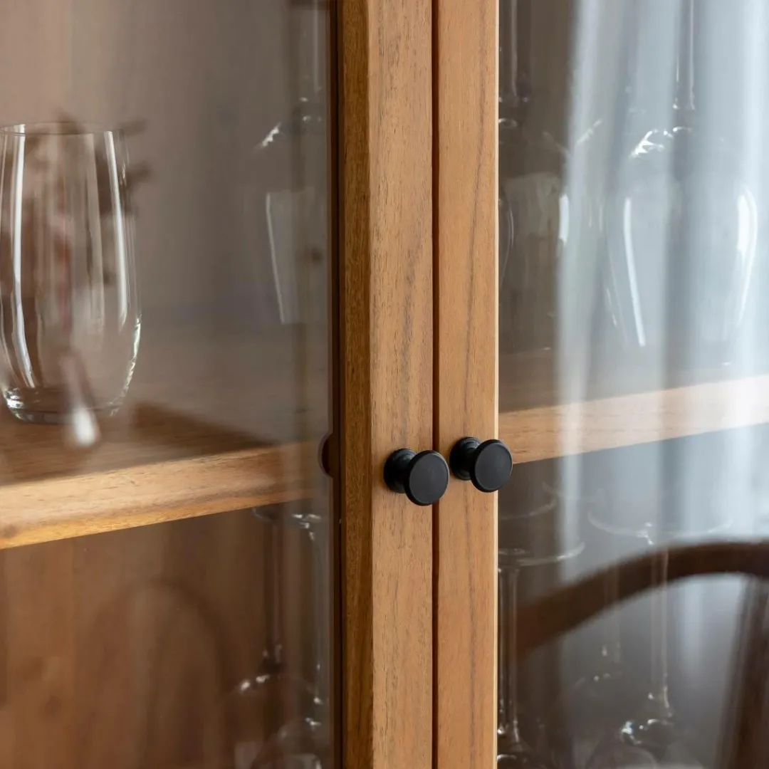 Plongez dans l’authenticité avec notre vitrine Jo. Fabriquée en bois d’acacia, elle dégage un charme intemporel avec son design arrondi et ses poignées en métal noir.