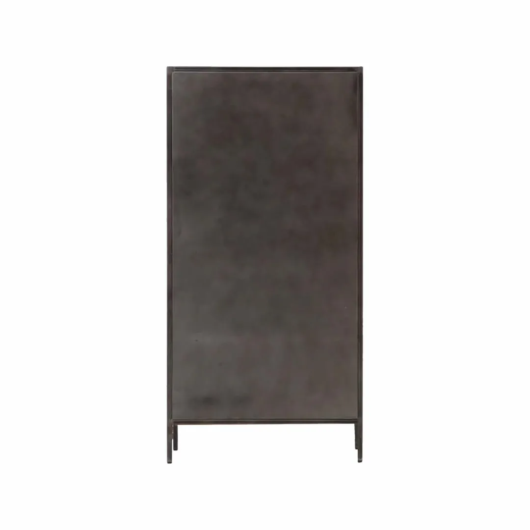 Conçue en métal et bois de manguier, il est aussi décoratif que pratique. Il hiérarchisera une pièce tant ses lignes droites et ses finitions vintages lui affirment un fort caractère. On aime beaucoup les finitions irrégulières et vieillies que l’on retrouve au niveau de l’encadré de la porte afin de mettre l’accent sur l’effet vintage.