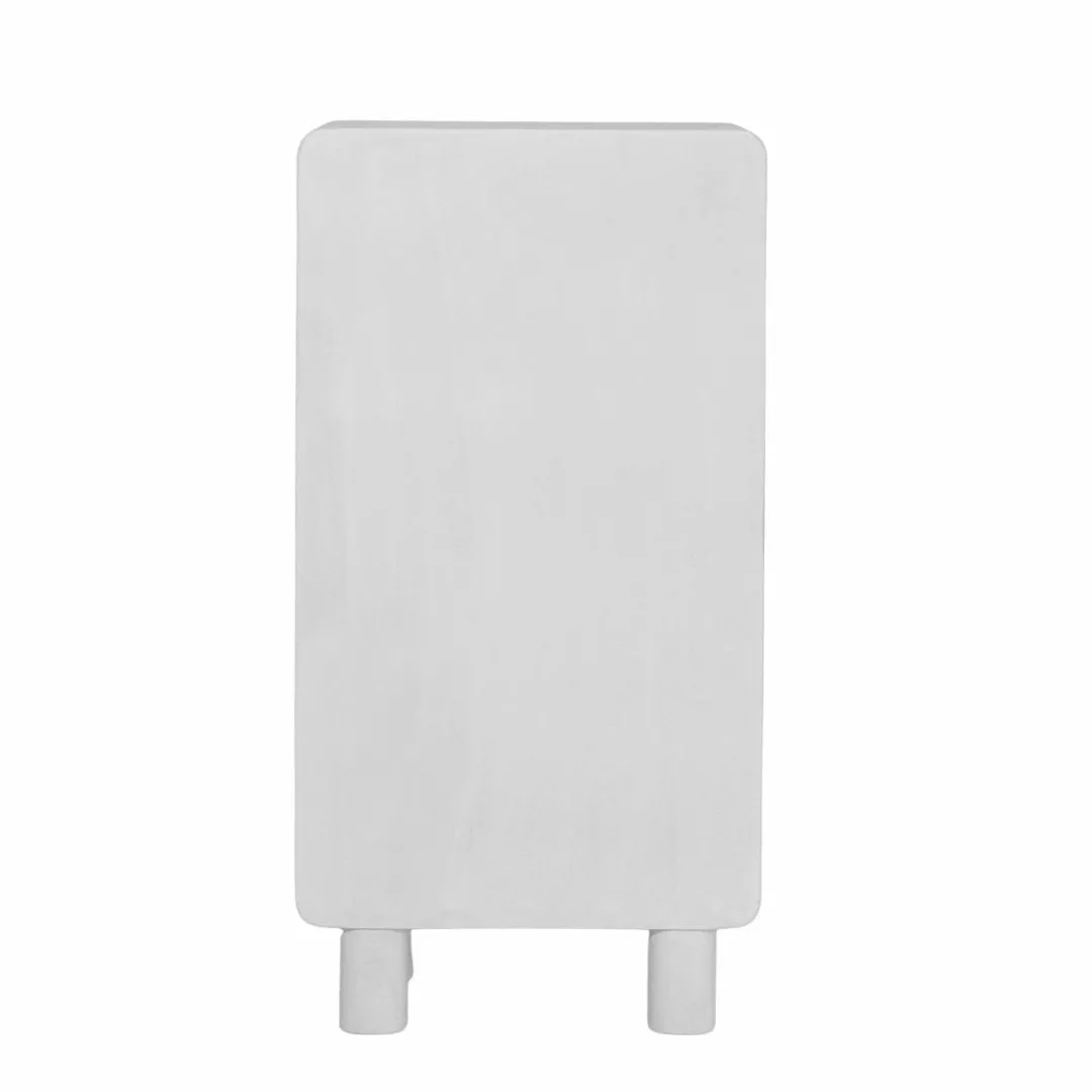 Son gabarit compact, monté sur quatre pieds cylindriques, permet une intégration facile dans toutes les pièces : entrée, chambre, bureau ou petit salon. Derrière ses deux portes se cachent trois étagères fixes, idéales pour ranger vaisselle, linge de maison, papiers ou objets du quotidien. Les boutons de porte, discrets mais bien pensés, conservent l’harmonie du design.