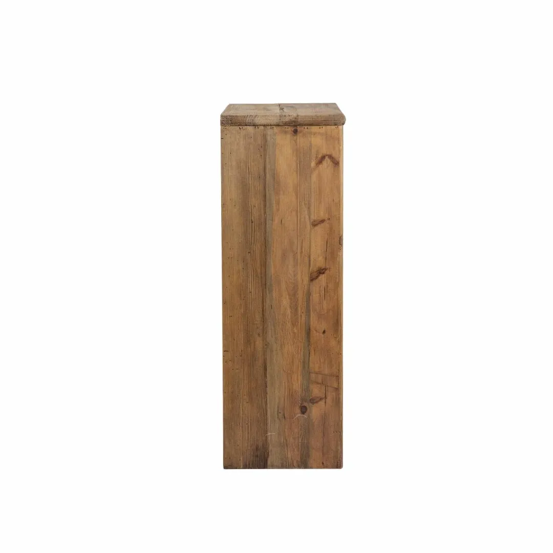 Cette armoire en bois recyclé de la collection Blaise incarne parfaitement l’esprit brut, chaleureux et authentique de cette gamme. Travaillée à partir de bois ancien soigneusement sélectionné, elle conserve toutes les irrégularités naturelles de la matière : nœuds apparents, nuances contrastées et traces du temps qui rendent chaque pièce absolument unique.