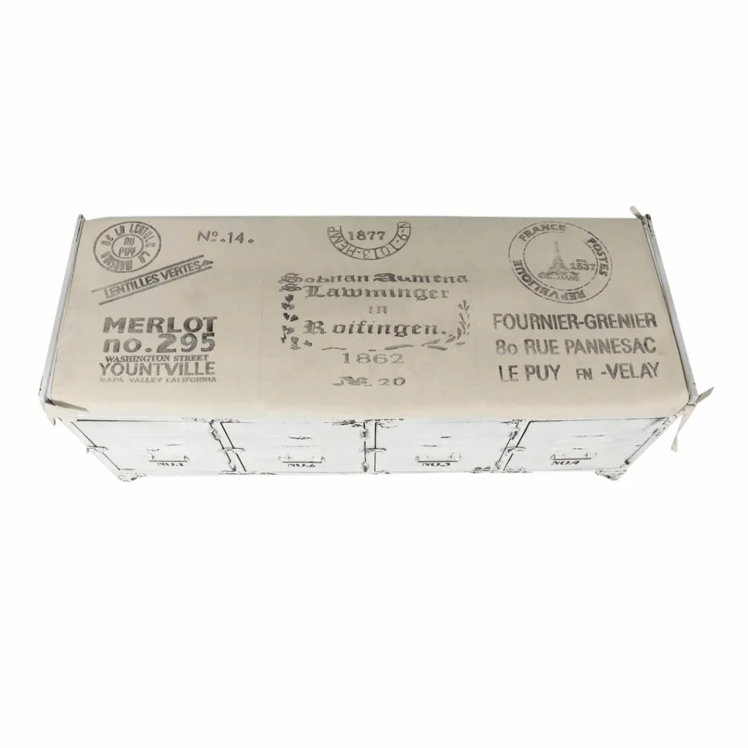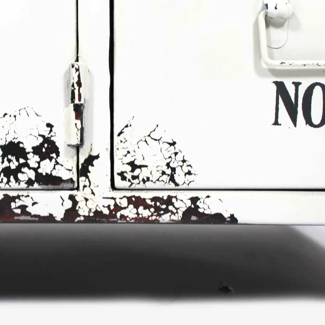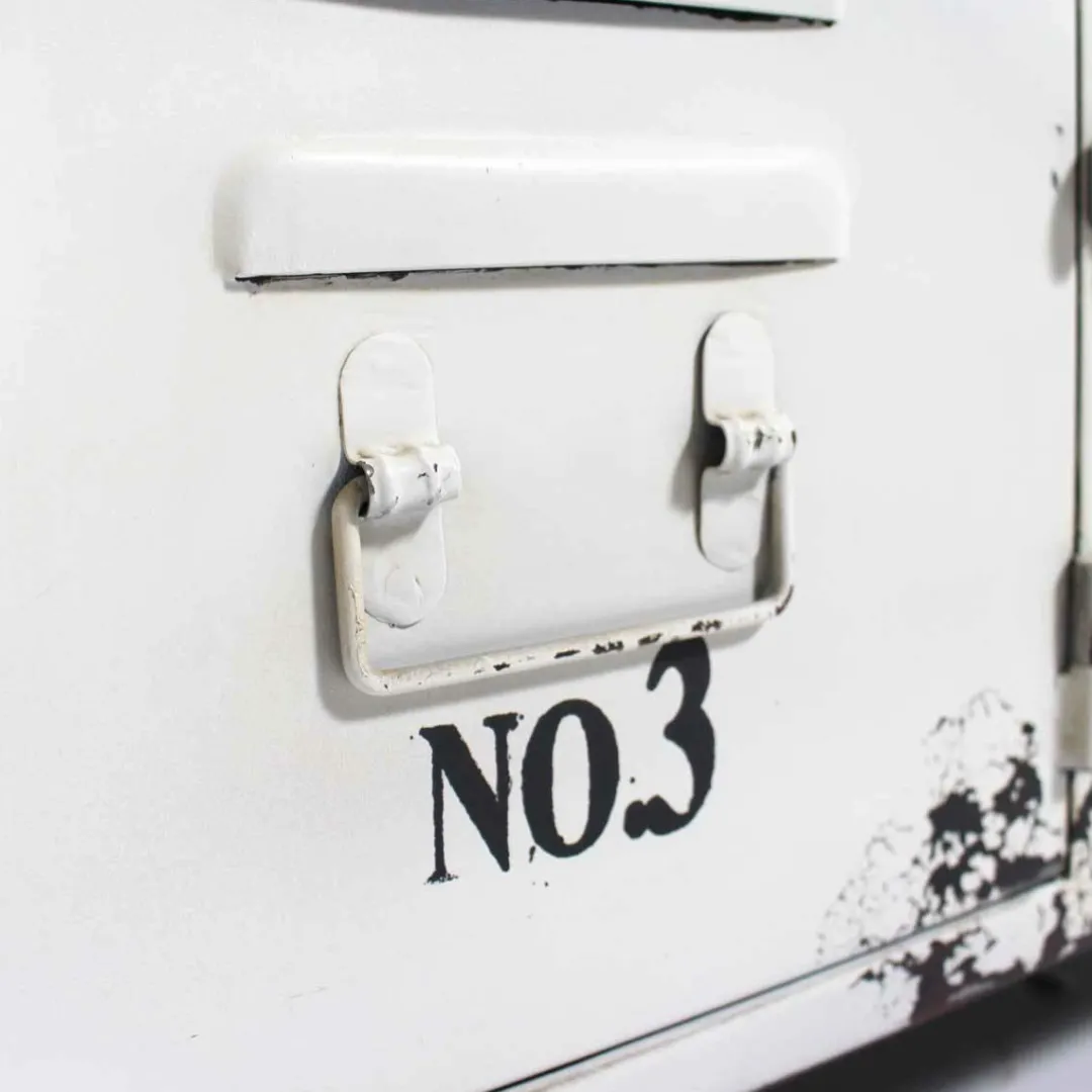 Ce banc bois massif conçu en métal blanc va vous surprendre d’originalité, il allie fièrement le métal qui est un matériau très actuel au traditionnel coussin en tissu. La structure en métal dispose de nombreux détails industriels comme les craquelures au niveau de la peinture, l’aspect casier d’antan, ou encore les loquets en métal.