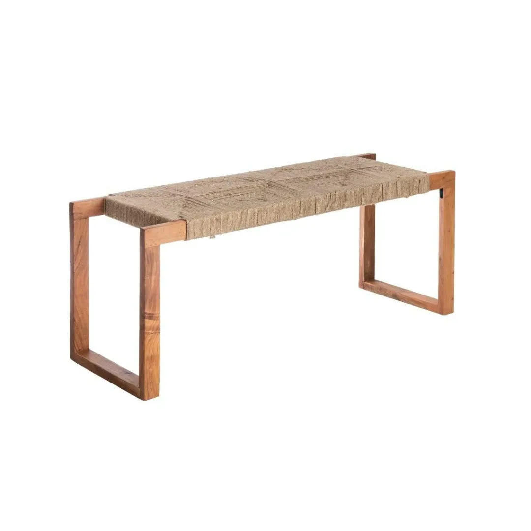 Côté conception, on est sur une structure design et une assise tisée. Le cordage beige s’allie magnifiquement bien aux nuances foncées du bois d’acacia. On est au max de la tendance bohème.