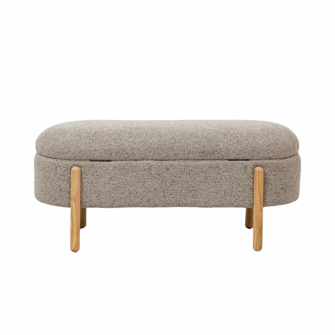 Le banc Nerio en bois de pin et tissu bouclette gris clair est une pièce aussi pratique que décorative. Son assise généreusement rembourrée en bouclette offre un confort agréable, tandis que son piètement en bois clair lui confère un style épuré et chaleureux, idéal pour sublimer une entrée, une chambre ou un salon.