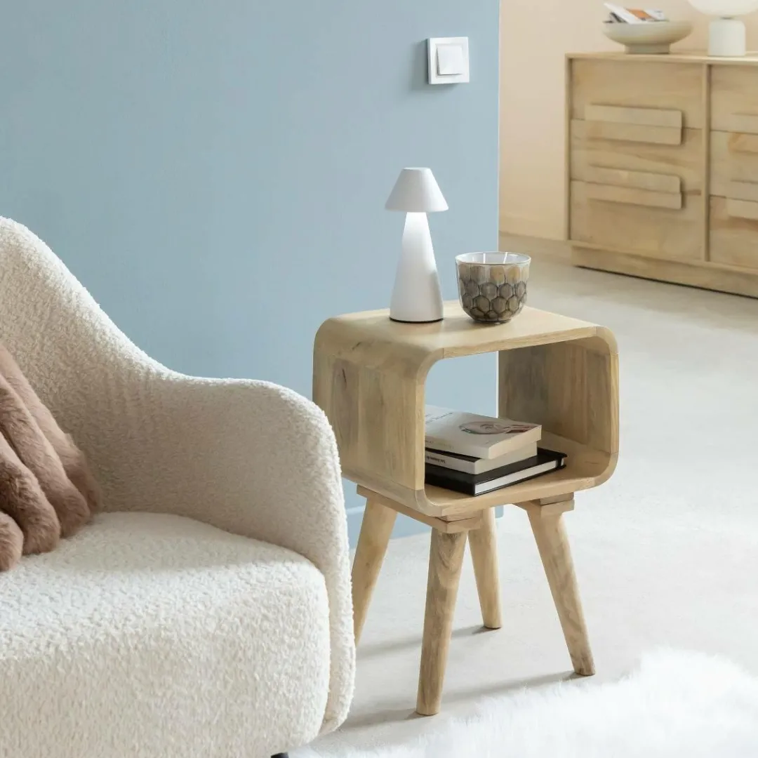 On craque pour le bois de manguier, un matériau noble aux nuances chaudes et au veinage unique, qui rend chaque meuble absolument singulier. Utilisé en bout de canapé ou même en petit meuble d’appoint, il s’adapte à vos envies tout en ajoutant du cachet à votre intérieur.