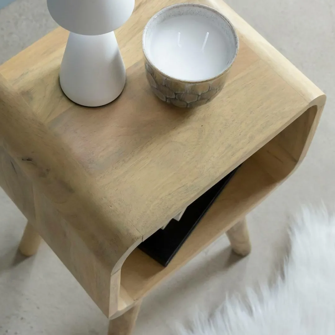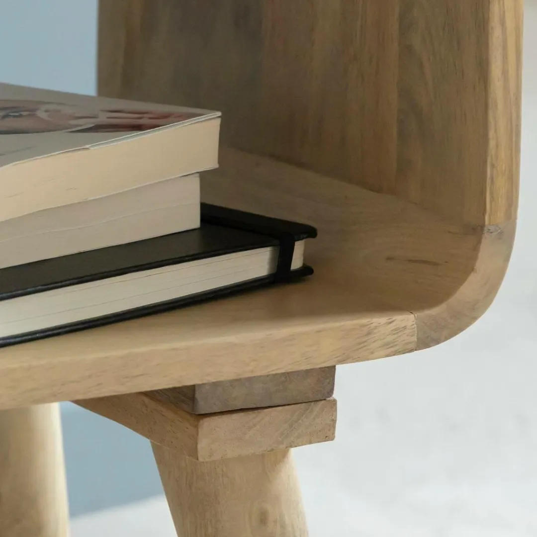 Apportez une touche naturelle et chaleureuse à votre salon avec ce bout de canapé en bois de manguier Maeva. Son design tout en rondeur et ses lignes épurées lui confèrent un style à la fois vintage et intemporel, parfait pour sublimer votre pièce de vie. Monté sur quatre pieds légèrement évasés, il assure une excellente stabilité tout en affirmant un look rétro chic.