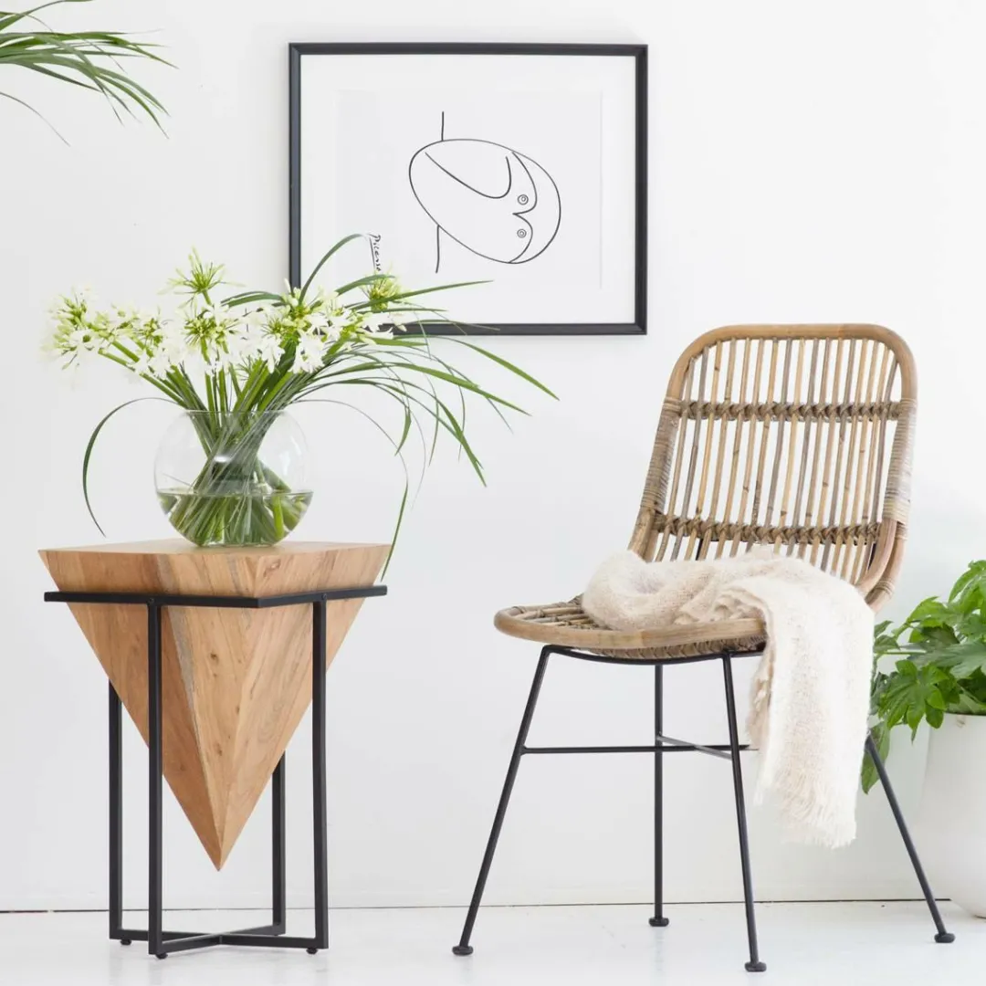 Authentique, cette table basse industrielle est sublimée par l’originalité de son plateau conique que vous ne retrouverez nulle part ailleurs. Ses courbes, très graphiques, lui offrent un design très raffiné et classe. Elle est dotée d’un piétement métal très aérien qui s’associe à merveille à son plateau en forme de cône en acacia. Son design a été pensé de façon à réaliser une pièce atypique et résolument moderne qui malgré sa petite taille en fera une pièce maitresse.