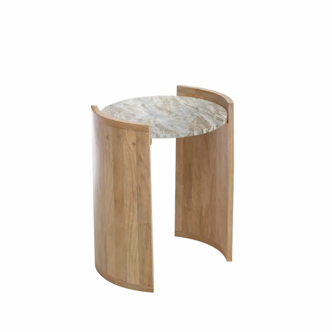 Ce meuble élégant présente un design épuré et moderne avec un plateau en marbre et un pied en bois de manguier. Vous aimerez la façon dont le doux éclat du marbre contraste avec le ton profond du bois de manguier, donnant à votre intérieur une esthétique intemporelle.