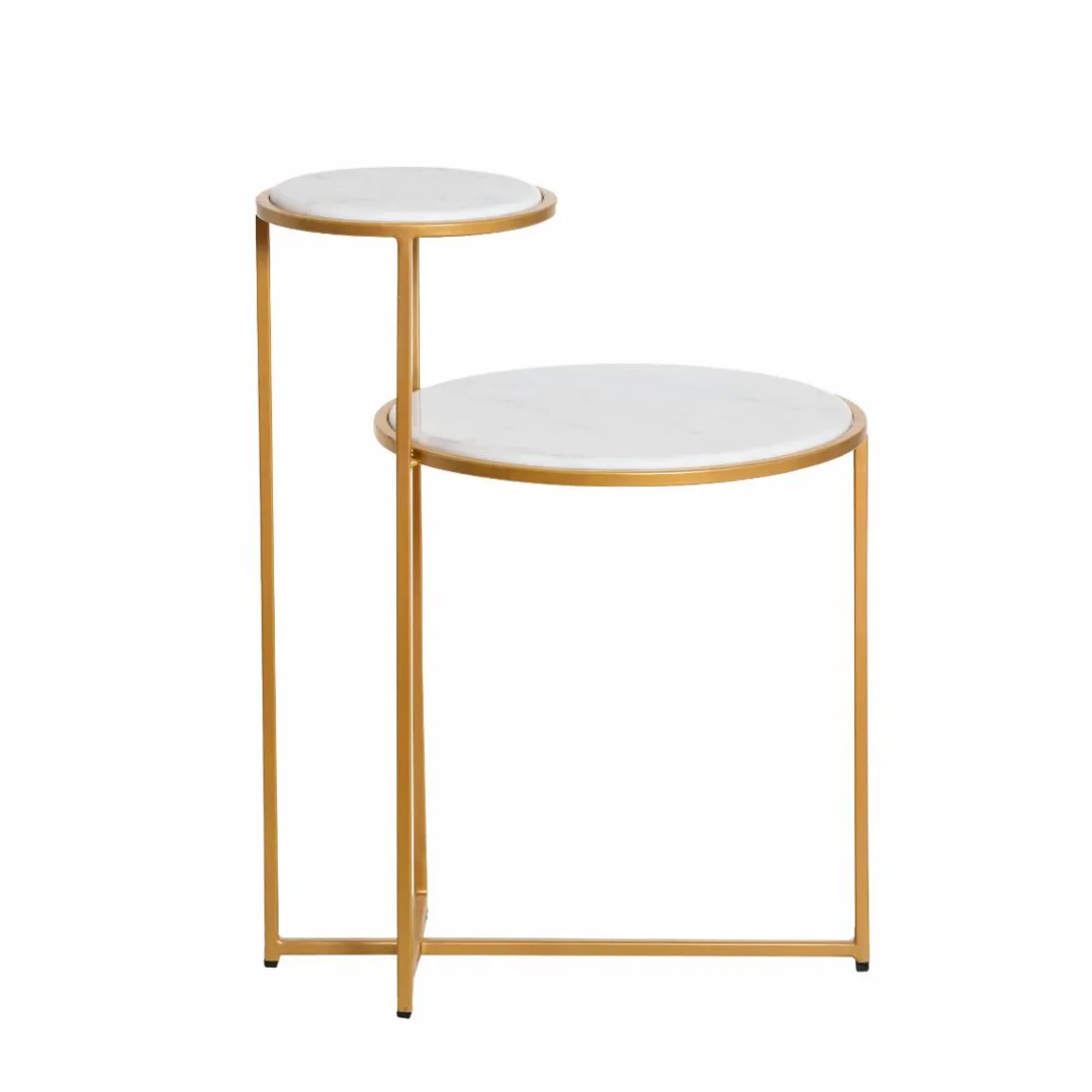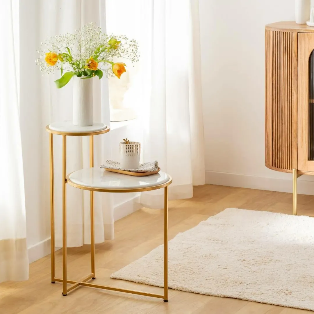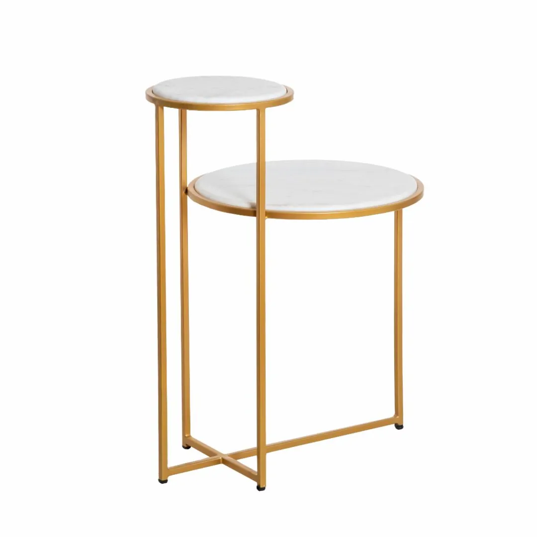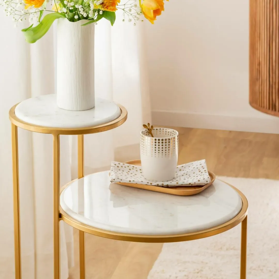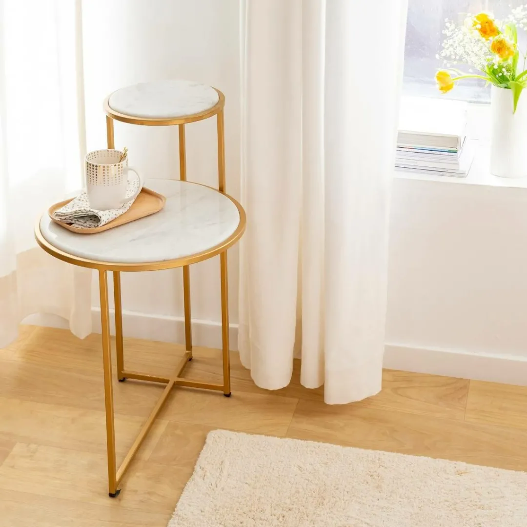 Vous êtes à la recherche d’un meuble intemporel qui ajoutera de la classe à votre salon ? Ne cherchez pas plus loin que le bout de canapé Rosita. Fabriqué avec un luxueux plateau en marbre blanc de 2 cm d’épaisseur et une structure en métal doré élégant, cette table d’appoint adopte un style contemporain tout en étant facile d’entretien.