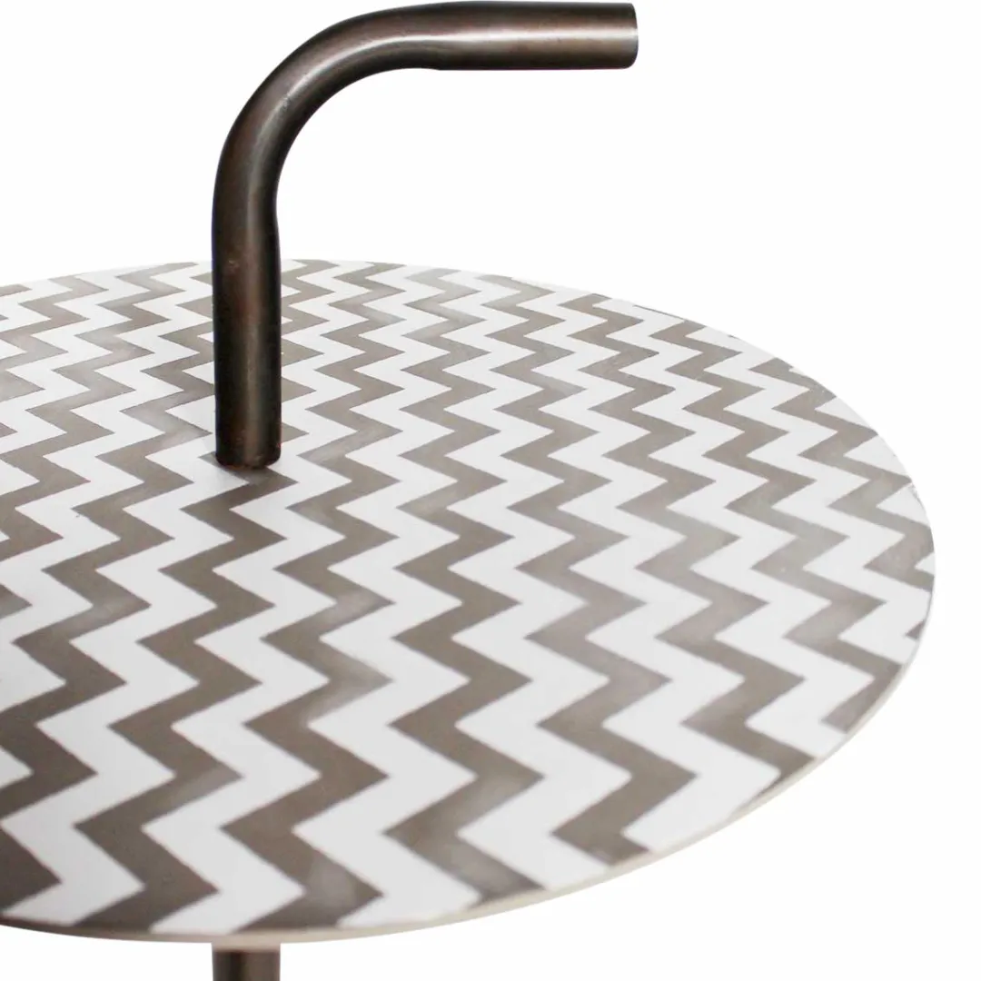 Cette table d’appoint industrielle en MDF se placera idéalement en bout de canapé pour accueilir un verre, une tasse, un livre ou une télécommande. Son design très original et ses couleurs blanc et gris en feront aussi bien une table d’appoint à sortir au moment de l’apéritif, qu’une petite console industrielle à disposer dans un couloir ou une entrée. On aime son esprit rétro son plateau gris avec imprimés géométriques blancs. Le pied de la table est en métal gris plein, pour une bonne stabilité et une grande robustesse.