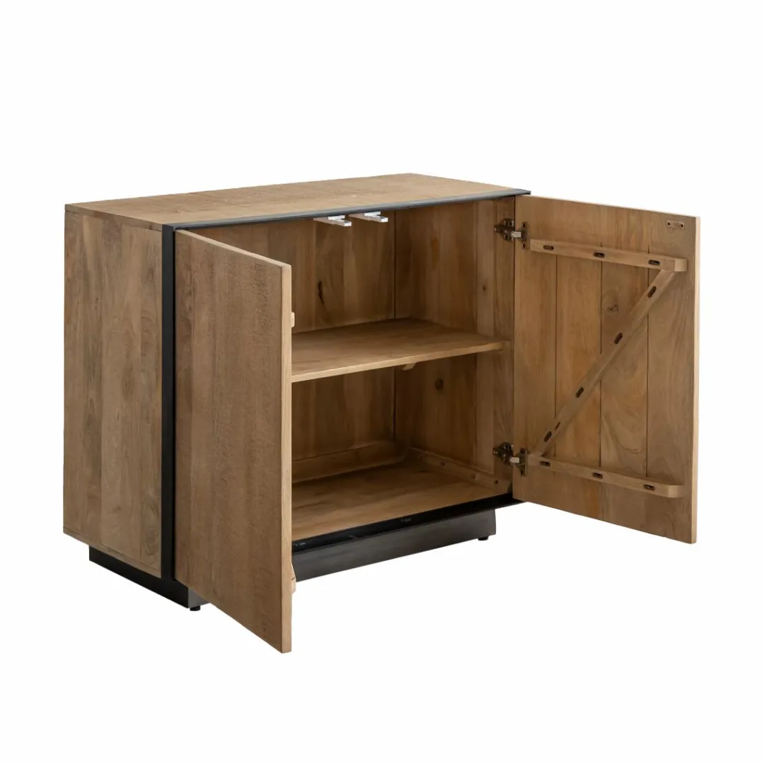 Complétez votre intérieur avec élégance grâce à ce petit buffet en bois de manguier et métal de la collection Isil. Son format compact en fait un atout idéal pour les espaces réduits, tout en conservant l’esthétique brute et authentique qui caractérise la gamme. Le bois de manguier, avec ses nuances chaudes et ses veinures naturelles, s’associe parfaitement au métal noir pour un rendu industriel chic.