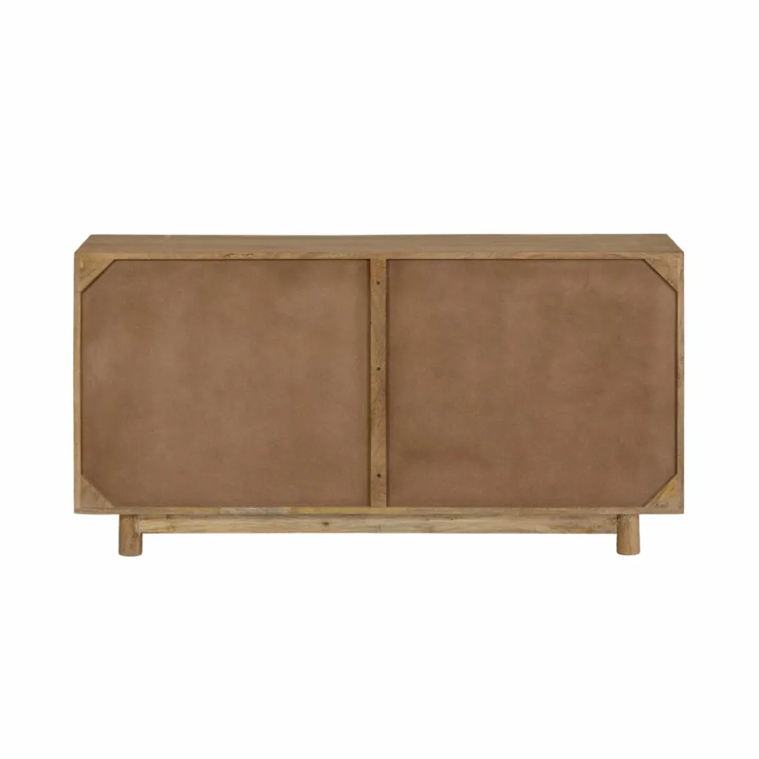 Affirmez votre goût pour le design avec ce buffet en bois de manguier de la collection Aaron. Ce meuble au style sculptural se distingue par ses façades ornées de formes organiques en relief, qui apportent une touche artistique et contemporaine à votre intérieur. Le bois de manguier, avec ses nuances naturelles et chaleureuses, sublime l’ensemble par son aspect brut et authentique.