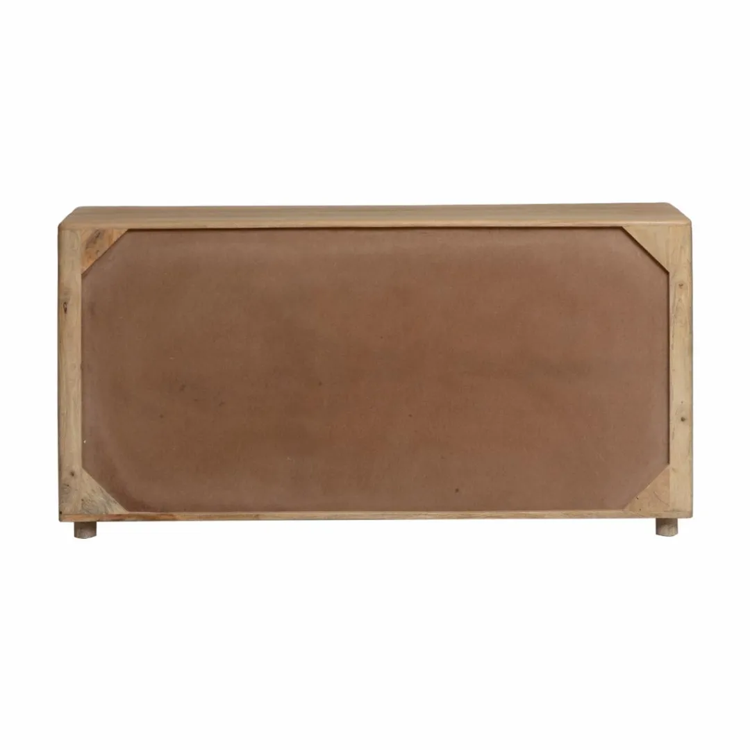 Le buffet Kael incarne l’élégance et la fonctionnalité dans un design sophistiqué en bois de manguier. Doté de deux portes et de trois tiroirs spacieux, il offre un espace de rangement généreux pour organiser vos objets avec style.