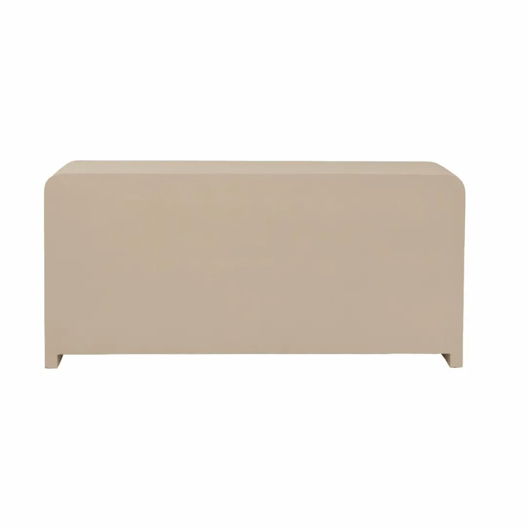 Les courbes arrondies donnent une sensation de douceur et d’élégance à ce meuble. Avec une hauteur de 75 cm, une largeur de 160 cm et une profondeur de 40 cm, il offre un espace généreux pour le rangement tout en étant compact et élégant.