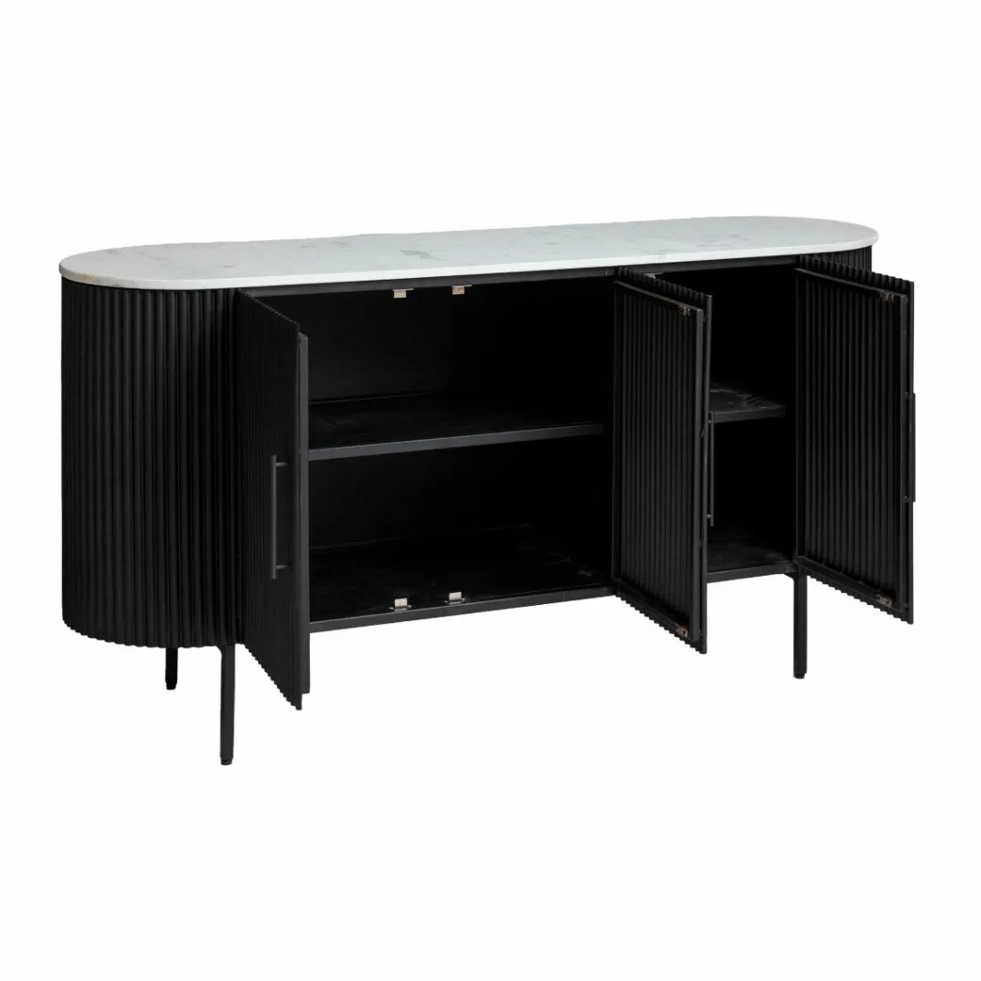Ce buffet est un réel atout pour ranger votre vaisselle. Grâce à ses deux étages de 30cm, vous pouvez facilement organiser votre rangement. Sa forme ovale très originale présente une largeur de 160 cm et une hauteur de 81 cm, des mesures parfaites pour adopter ce buffet dans n’importe quelle pièce, qu’elle soit petite ou grande !