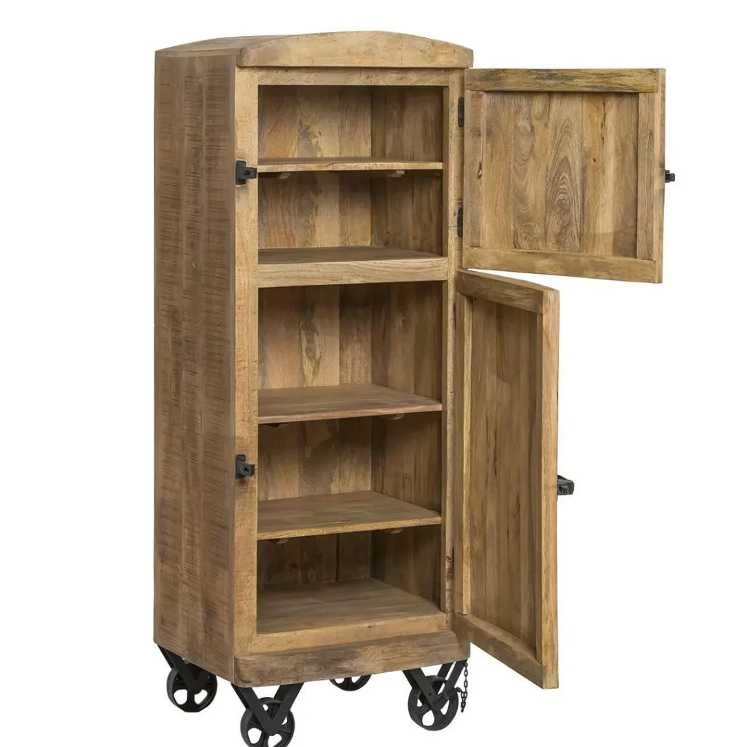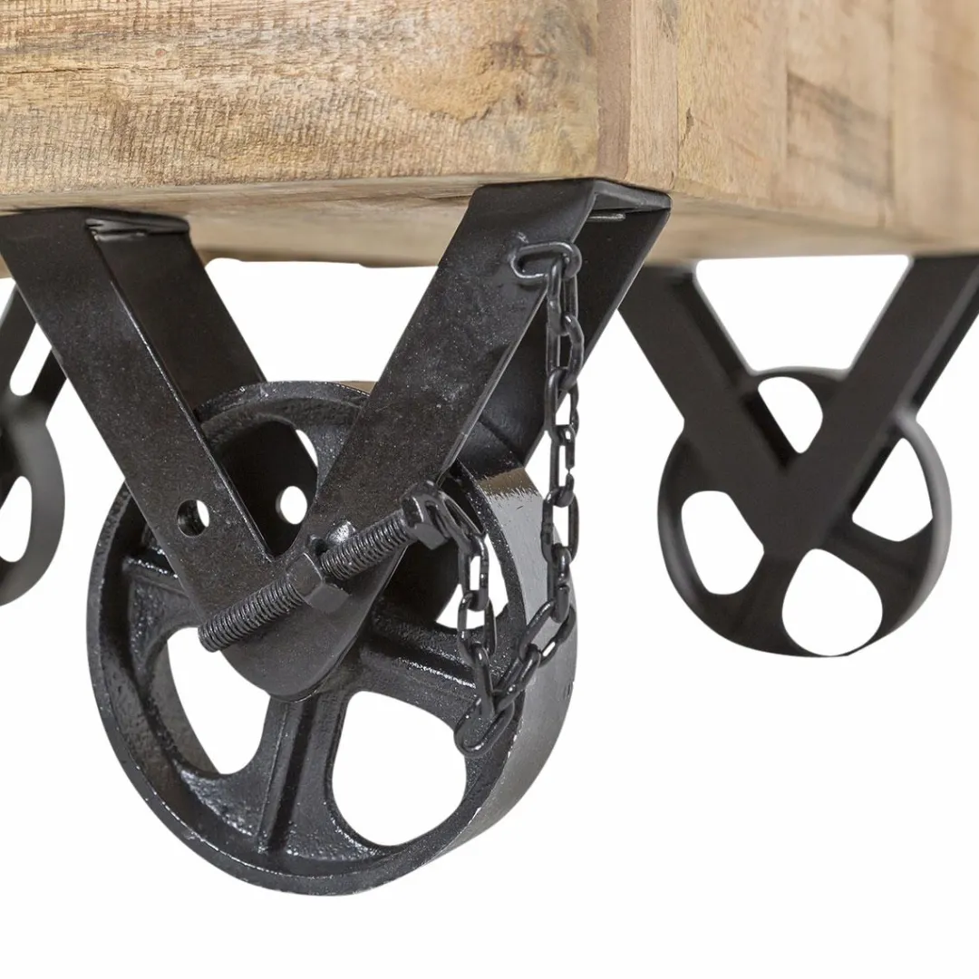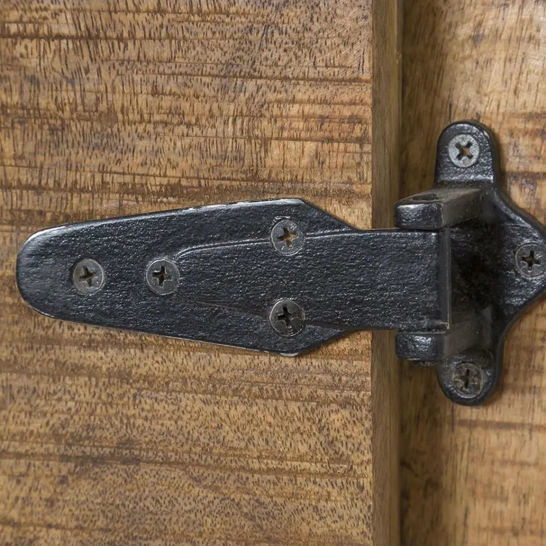 Doté d’un design tendance et bien pensé, rien n’a été laissé au hasard. On apprécie les poignées frigo en métal noir qui contrastent avec le bois, on adore les roulettes au style très industriel, et on craque pour les nuances claires et solaires du bois de manguier. Son petit plus, ce buffet industriel dispose de dimensions atypiques pour un buffet, il conviendra donc facilement aux petits comme aux grands espaces…. Profitez également du fait qu’il soit à votre portée et mobile !