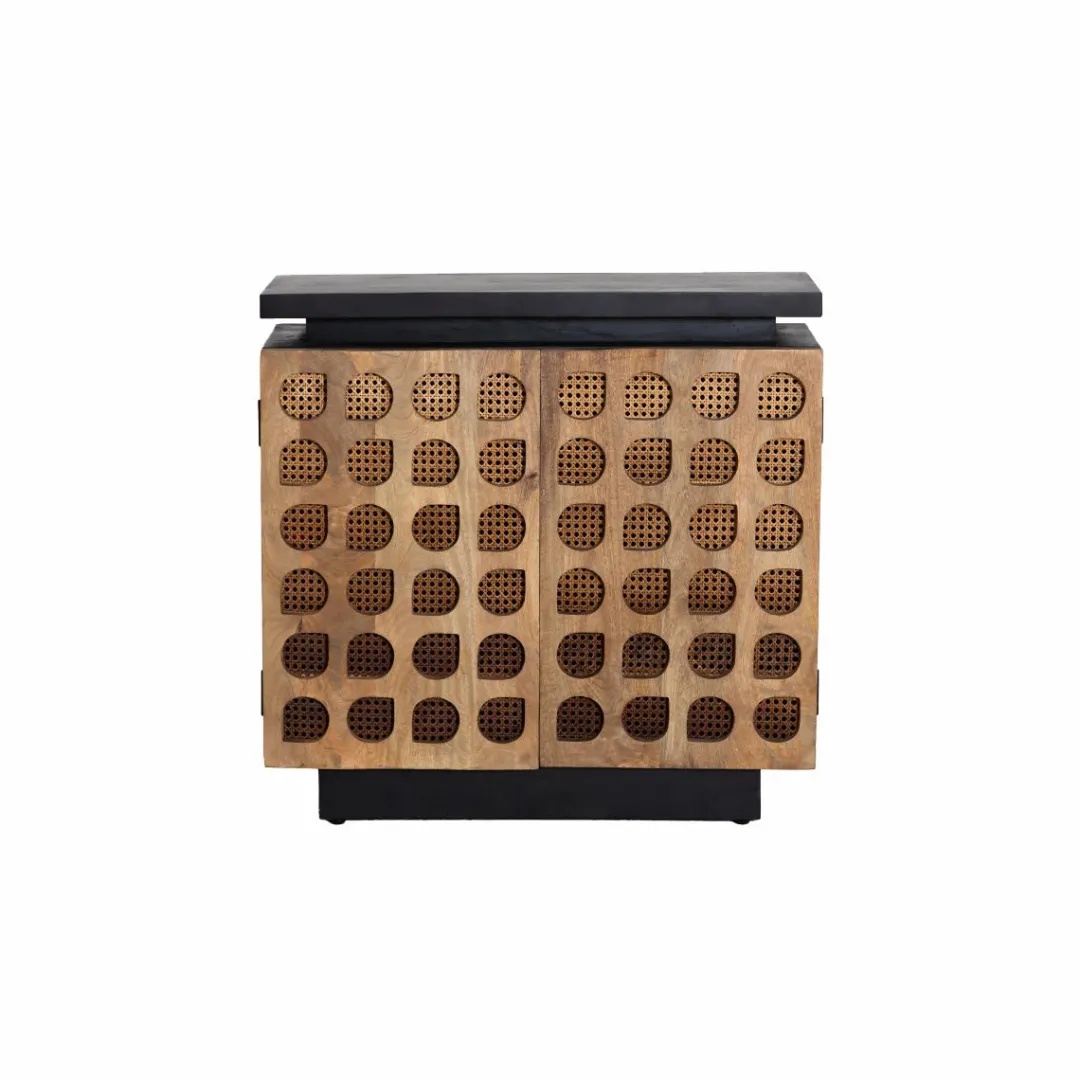 Côté conception : On est sur un design complétement singulier. C’est une fabrication en manguier massif qui allie deux tons ; le bois naturel et le bois peint en noir. On ne peut que souligner la beauté du cannage qui met en valeur les « gouttes » sculptées dans le bois. Une œuvre, n’est-ce pas ?