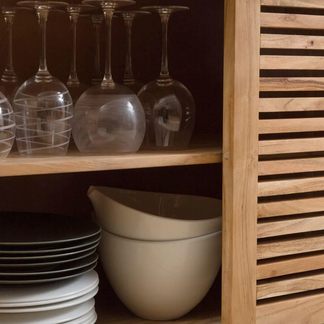 Coup de coeur assuré pour les façades de ses portes linéaires qui amènent de la douceur mais aussi un effet passe partout à ce meuble notamment grâce à ce design ajouré. Il s’adaptera dans n’importe quel style de décoration grâce aux nuances lumineuses de son bois.
