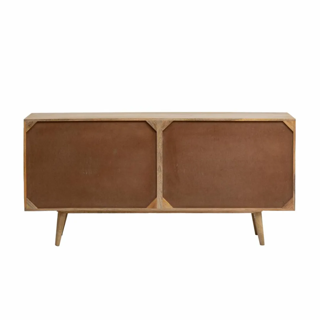 Le buffet long en bois de manguier Rowene est une pièce maîtresse qui ajoutera une touche contemporaine à votre intérieur. Fabriqué à partir de bois de manguier de haute qualité, ce meuble allie l’élégance authentique et la robustesse pour une expérience visuelle et tactile exceptionnelle. Chaque détail est soigné, des veines distinctes du bois aux finitions impeccables, faisant de chaque buffet une pièce unique.