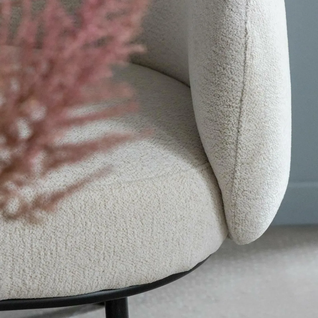 Avec son dossier arrondi et son assise confortable, il invite à la détente tout en ajoutant une note élégante à l’intérieur. Les pieds en métal noir apportent un contraste moderne et garantissent robustesse et stabilité.