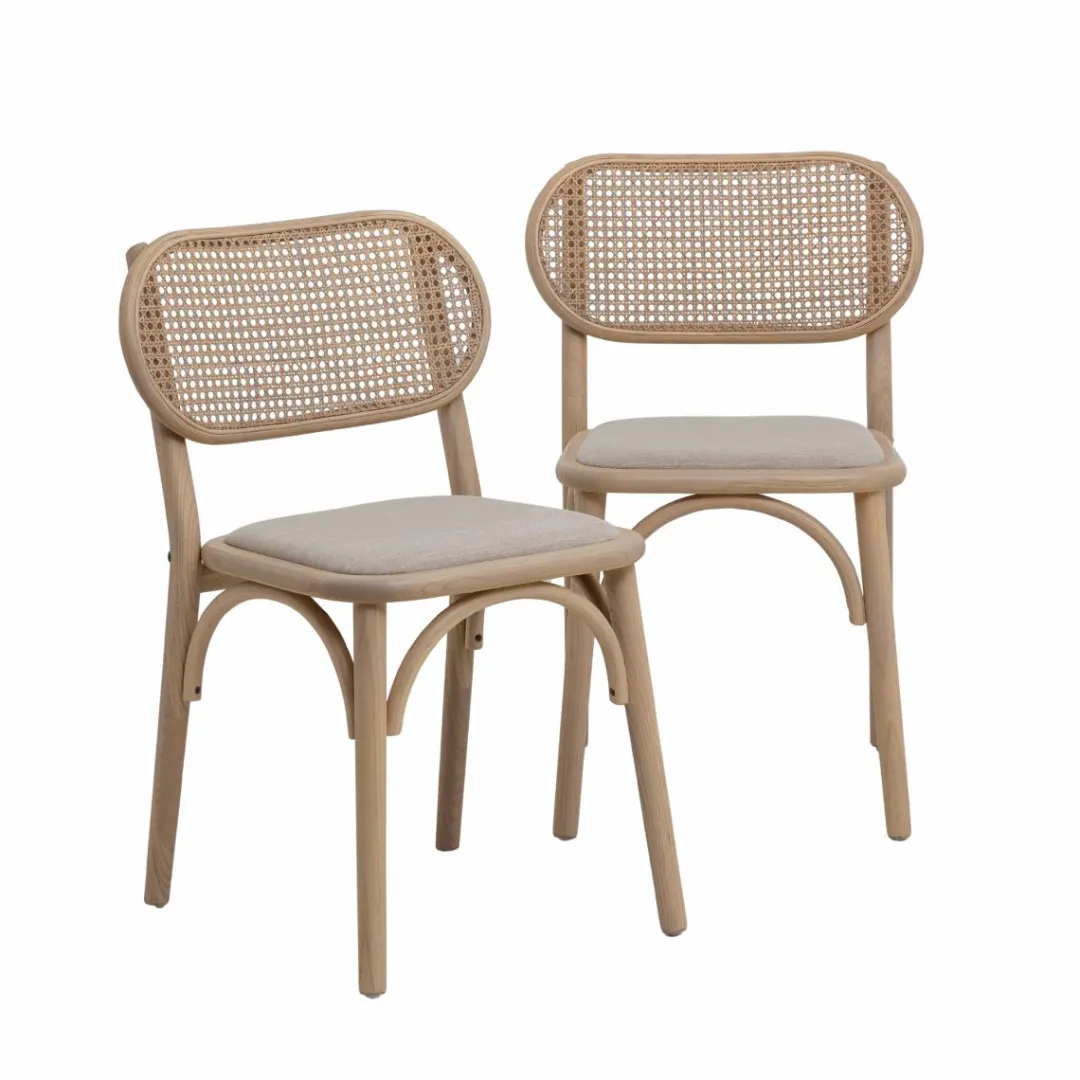 Invitez l’élégance naturelle et la légèreté dans votre intérieur avec cette chaise en orme clair et dossier en cannage. Avec sa silhouette tout en courbes et son bois délicatement blanchi, elle évoque les lignes intemporelles du mobilier vintage, tout en restant ancrée dans les tendances actuelles.