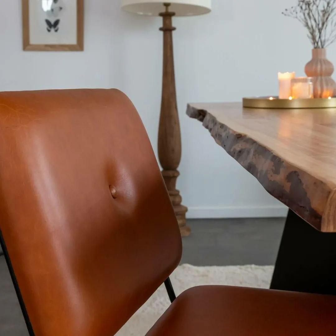 Voici la chaise Arthur – un meuble unique et accrocheur qui ajoutera du style et de la sophistication à n’importe quelle pièce. Alliant un design vintage à des finitions modernes, cette chaise ne manquera pas de faire tourner les têtes. L’assise et le dossier sont fabriqués en cuir marron luxueux, tandis que les pieds en métal noir assurent un soutien solide. Avec une largeur de 45 cm et une hauteur de 84 cm, cette chaise s’adaptera parfaitement aux petits espaces sans compromettre le confort.