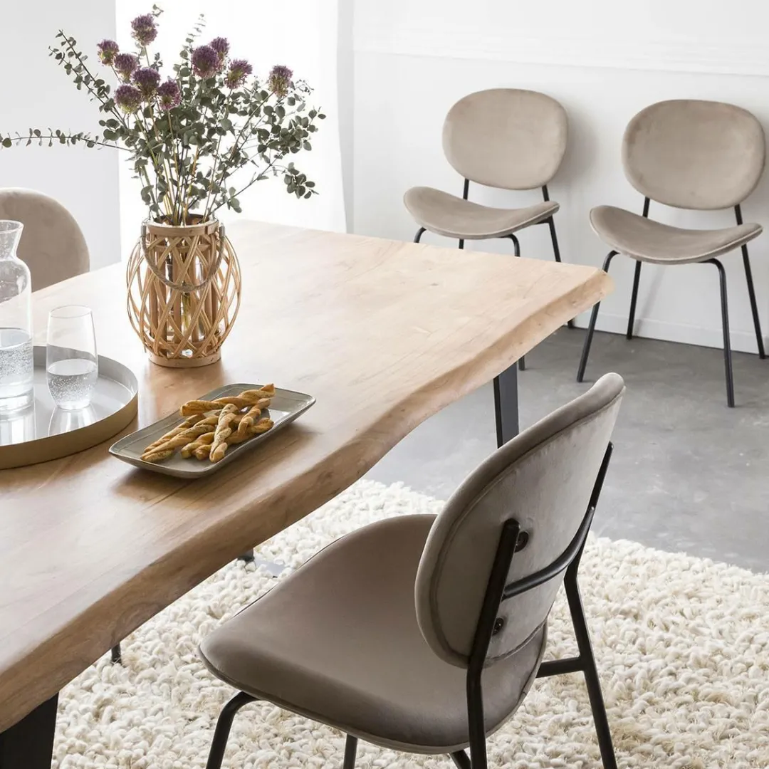 Le design de cette chaise vous permettra d’obtenir une pièce claire et aérée. Son piètement en métal noir assure une robustesse sans égale tandis que le velours de son assise assure le confort. Pour une ambiance conviviale disposez ces chaises autour de votre table à manger. Si vous souhaitez une ambiance cosy, disposez là devant votre coiffeuse ou votre bureau. Le dossier a été créé de manière à parfaitement envelopper votre dos !