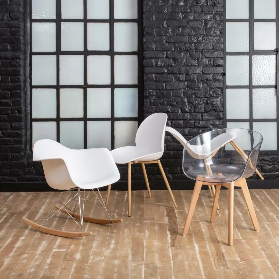 Conçues à partir de matériaux très actuels, elles disposent d’une assise très confortable en plastique et d’un piétement en métal imitation chêne. L’association entre le blanc et le bois est très équilibré et fonctionne très bien, il met en valeur une conception épurée et raffinée.